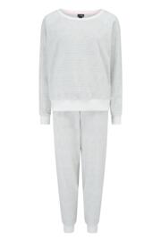 Sleep or lounge in ultimate comfort with the Cosy Fleece Sweatshirt and Jogger Pyjama Set. Made from super soft baby fleece fabric, this set is designed to keep you warm and snug during the cold weather. The sweatshirt-style top features raglan sleeves for a relaxed fit, while the slim jogger trousers come with an elasticated waistband and cuffs for a perfect fit. Embrace the super cosy feel of this set, ideal for those lazy days and cosy nights in.