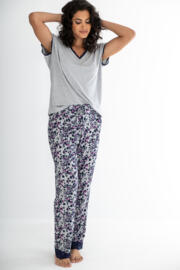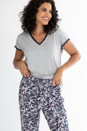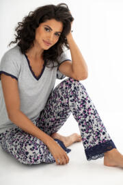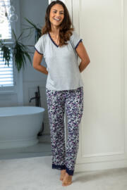 The V-neck t-shirt is made from dreamy viscose jersey and finished with delicate lace detailing for that extra feminine touch. Paired with printed pyjama bottoms that feature an easy elasticated waistband, it’s a match made in lounge-wear heaven.