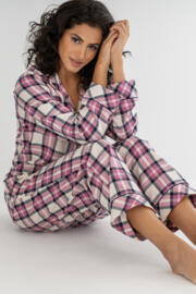 Get ready to snuggle up and relax in ultimate comfort with the Cosy Check Brushed Cotton Pyjama Gift Set. Made from beautifully soft brushed cotton fabric, this super cosy pyjama set is perfect for those chilly nights in. The classic check print and contrast piping add a touch of timeless sophistication to these luxurious PJs, while the long sleeve top and trouser with elasticated waistband provide the perfect balance of style and comfort. The classic collared button-up top creates a smart yet effortless look, making it perfect for lounging around the house or sleeping in style. Packaged to perfection with a beautifully wrapped Pour Moi ribbon, this pyjama set makes the perfect gift for any occasion. Upgrade your nightwear game with the Cosy Check Brushed Cotton Pyjama Gift Set today!