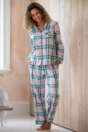Get ready to snuggle up and relax in ultimate comfort with the Cosy Check Brushed Cotton Pyjama Gift Set. Made from beautifully soft brushed cotton fabric, this super cosy pyjama set is perfect for those chilly nights in. The classic check print and contrast piping add a touch of timeless sophistication to these luxurious PJs, while the long sleeve top and trouser with elasticated waistband provide the perfect balance of style and comfort. The classic collared button-up top creates a smart yet effortless look, making it perfect for lounging around the house or sleeping in style. Packaged to perfection with a beautifully wrapped Pour Moi ribbon, this pyjama set makes the perfect gift for any occasion. Upgrade your nightwear game with the Cosy Check Brushed Cotton Pyjama Gift Set today!