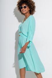 The perfect beach cover-up has arrived. Answering all your style dilemmas during your next getaway or those warm summer days, the Crinkle O-Ring Midi Beach Kaftan is designed for effortless dressing. Featuring a V-neckline and floaty sleeves, this kaftan made from crinkle texture fabric drapes beautifully for a relaxed, yet stylish look. With an elasticated waistband for a comfortable and flattering fit, the standout feature of the Crinkle O-Ring Midi Beach Kaftan is textured wood effect O-ring detail that adds a touch of bohemian charm to this must-have beachwear style.