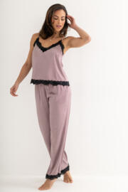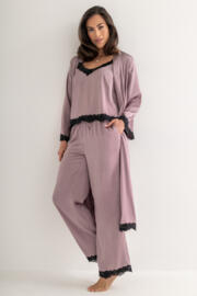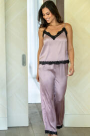 Slip into something more luxurious for the evening with the Dusk Satin and Lace Cami and Trouser Pyjama Set. This irresistible pyjama set is crafted with the finest blend of lace and satin, combining the softness of satin with the delicate allure of lace, creating a stunning contrast that is sure to enhance your sleepwear collection. This pyjama set features a camisole pyjama top with adjustable thin straps and elasticated waist trousers so you can sleep easy knowing that you’ve found the perfect fitting pyjama set. Whether you're lounging around the house or heading to bed, the Dusk Cami and Trouser Set is the perfect choice for a luxurious and stylish nightwear option.
