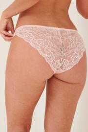 Mesh and lace come together to create this stunning Brazilian style. With a soft and shiny front panel and mesh detailing on the legline, this style is super flattering and flirty. Feel cheeky in these brazilian knickers, finished with an all over lace back and scalloped edging.