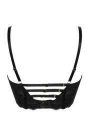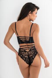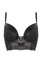 We’ve got the perfect lingerie piece for those that want both sexiness and comfort. With its underwired construction and lightly padded plunging shape, it provides a flattering and supportive fit that complements your natural figure. The opulent lace with contrasting liner adds a touch of luxury while the soft PU faux leather panels create a striking contrast and sensual vibe. The back strapping is fully adjustable to ensure a comfortable and secure fit, making this sexy lingerie style perfect for all-day wear. The unique zip front feature adds a touch of versality, allowing you to fasten it both at the front or back. Whether you’re wearing it for a special occasion or simply to add a little extra glamour to your everyday life the Onyx Zip Front Fastening Padded Longline Bra and matching knickers are a perfect choice. Available in sizes B-F.
