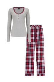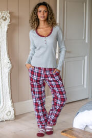 Our Rib Jersey Lace Trim Henley Top & Check Trouser Pyjama Set is the ultimate indulgence in comfort and style. The brushed cosy check trousers provide the perfect amount of warmth and softness, while the long sleeve soft stretchy rib top delivers unbeatable comfort. The scoop neck lace detail adds a touch of elegance to this otherwise casual pyjama set. So, whether you're lounging at home or lying in bed, this set is the perfect combination of comfort and style. Sleep easy and in style with the Rib Jersey Lace Trim Henley Top & Check Trouser Pyjama Set.
