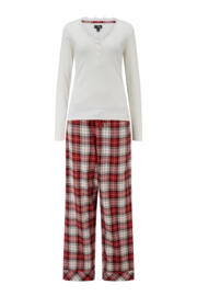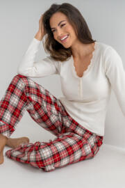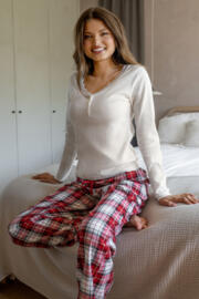 Our Rib Jersey Lace Trim Henley Top & Check Trouser Pyjama Set is the ultimate indulgence in comfort and style. The brushed cosy check trousers provide the perfect amount of warmth and softness, while the long sleeve soft stretchy rib top delivers unbeatable comfort. The scoop neck lace detail adds a touch of elegance to this otherwise casual pyjama set. So, whether you're lounging at home or lying in bed, this set is the perfect combination of comfort and style. Sleep easy and in style with the Rib Jersey Lace Trim Henley Top & Check Trouser Pyjama Set.