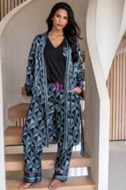Indulge in luxurious comfort with the Satin Jersey T-Shirt Pyjama Set. This chic and super soft pyjama set features a jersey and satin mix top with a stylish top pocket detail and a flattering V-neckline. The satin trousers are designed with a mock tie and contrast piping on the cuffs, adding a touch of luxury to your nightwear. Perfect for a relaxing evening at home, this set combines sophisticated style with ultimate comfort.